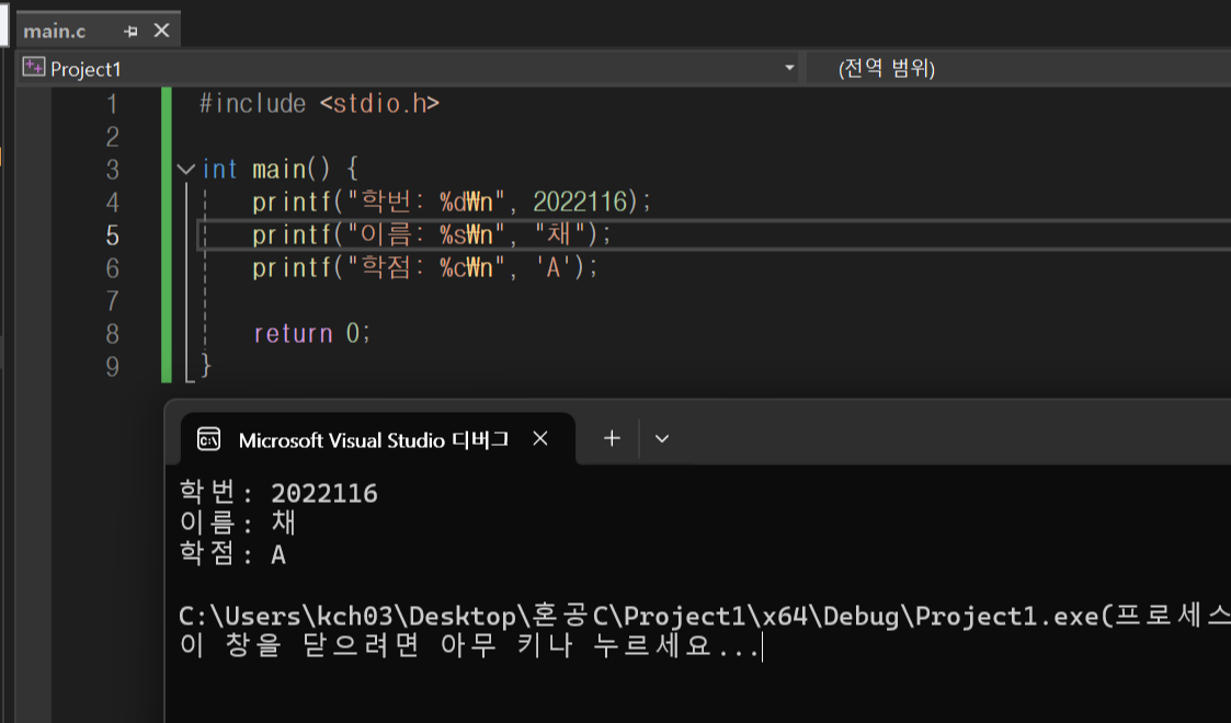 자신의 학번, 이름, 학점을 출력하는 프로그램 완성하기.